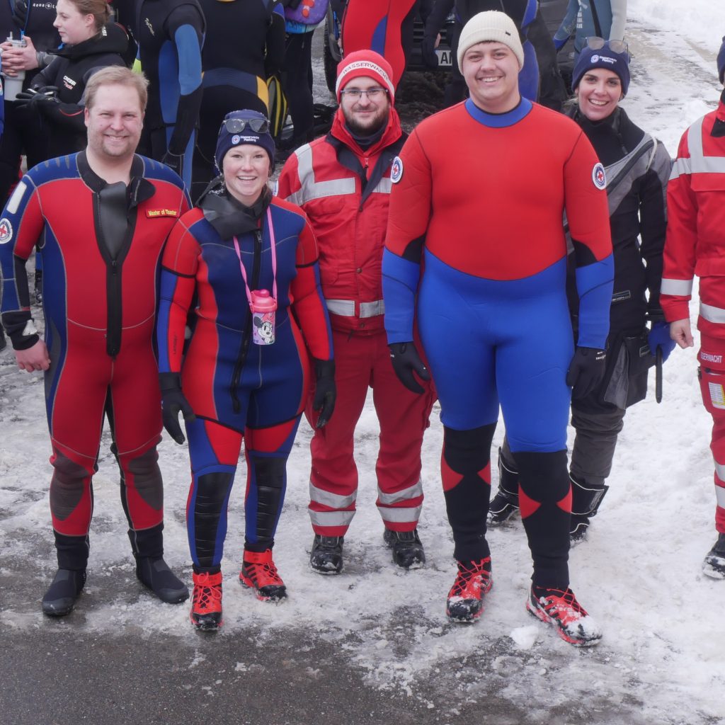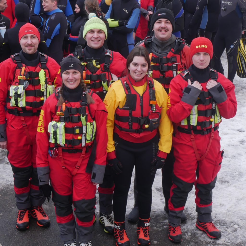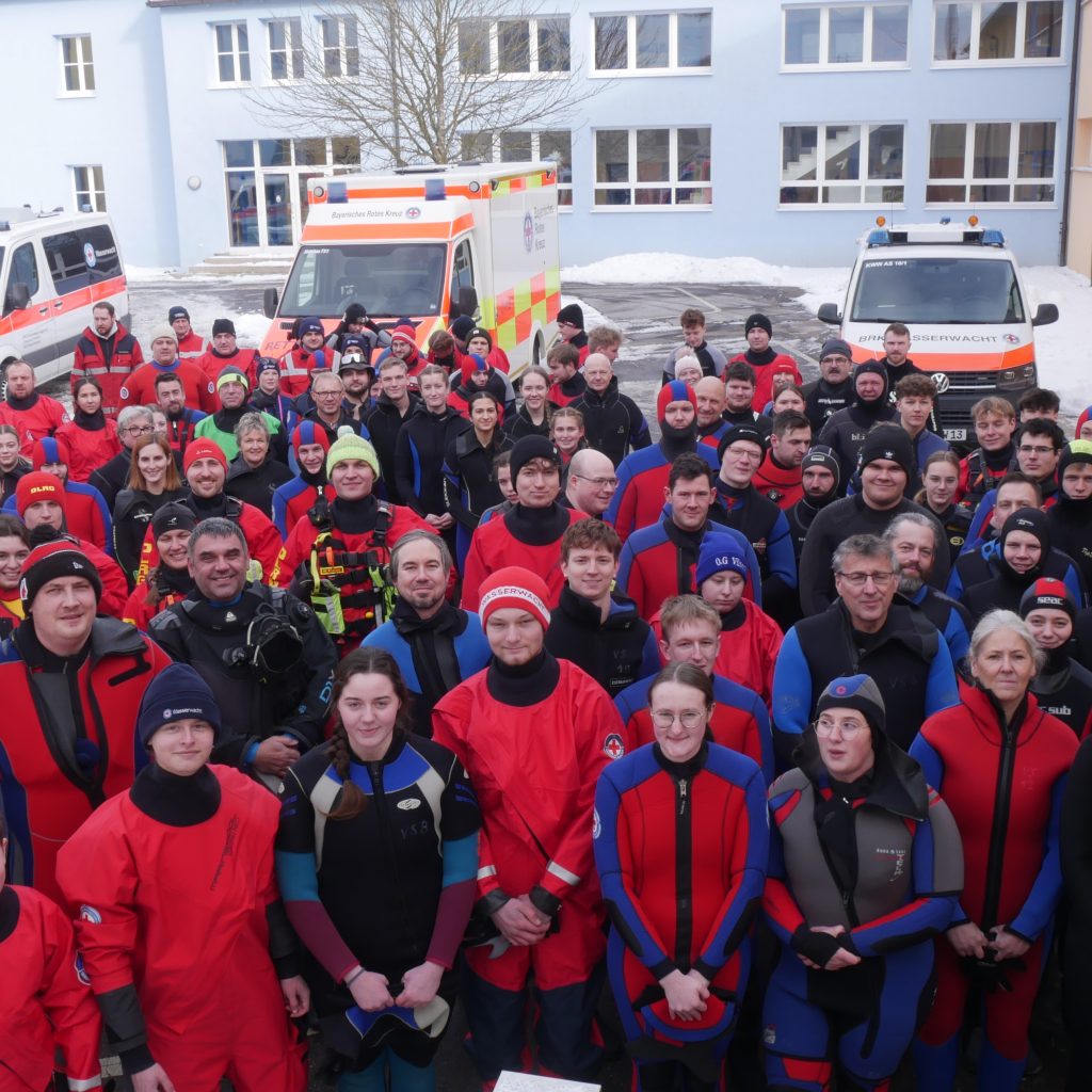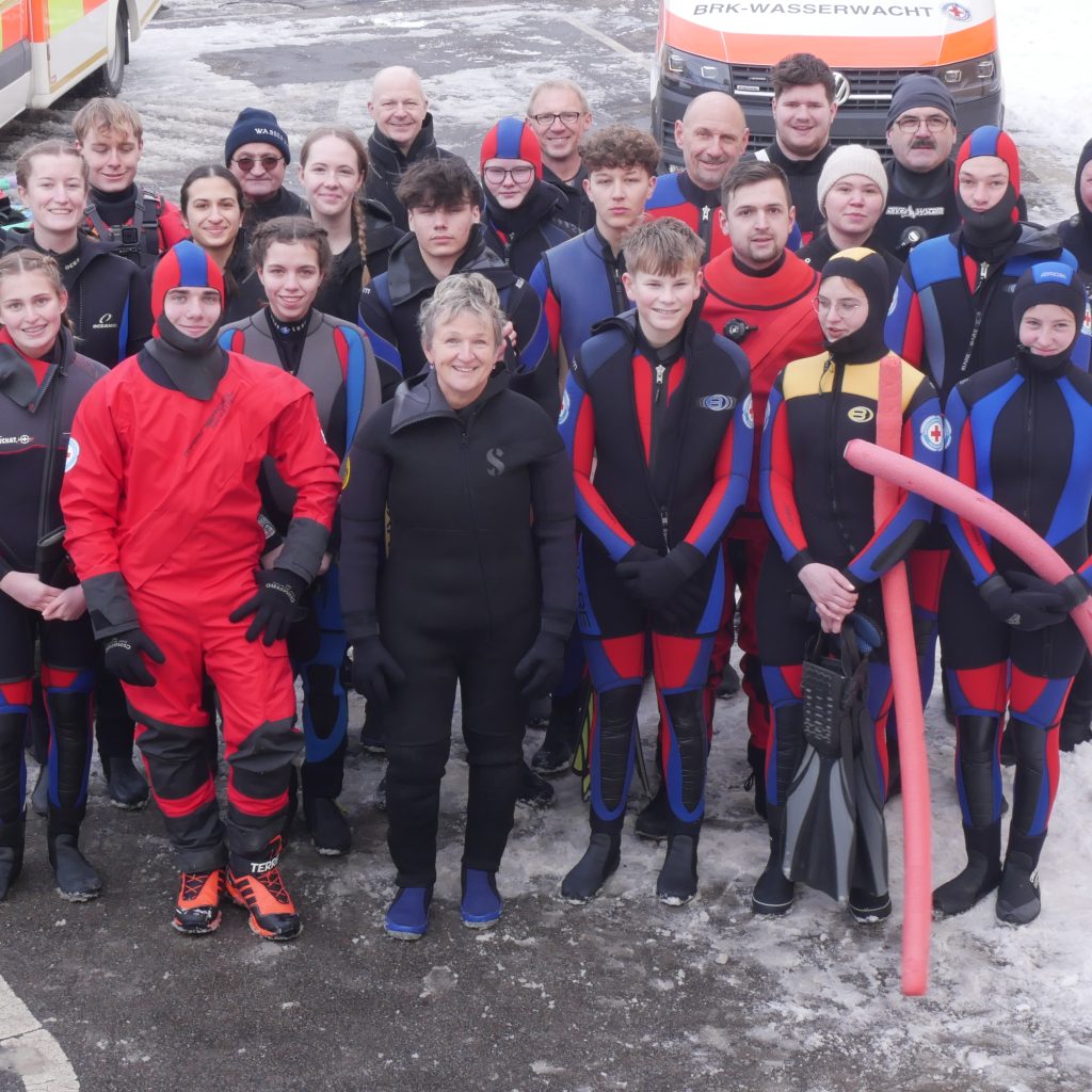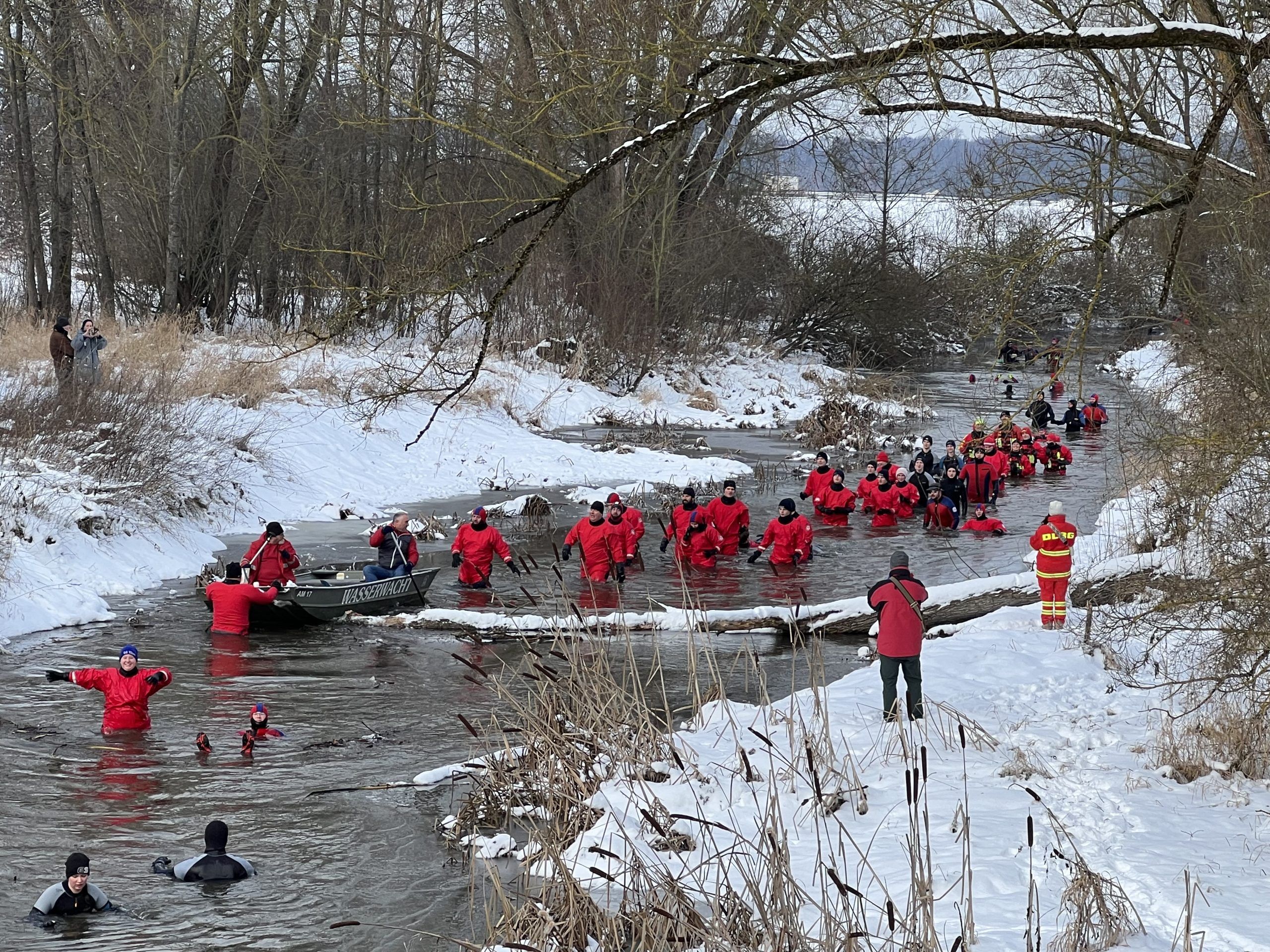 Ein echtes Winter-Vilsschwimmen bei minus 0,5 Grad Wasser-„Wärme“ und frischen minus 7,5 Grad Außentemperatur bot die Hahnbacher Wasserwacht des BRK. Bereits zum 45. Mal hatte man dazu eingeladen und vorbildlich „rundum“ betreut. Nach einem Weißwurstfrühstück im Rittersaal sollte es gestärkt um 14 Uhr, gut in Neopren verpackt und mit Begleitbooten, losgehen.